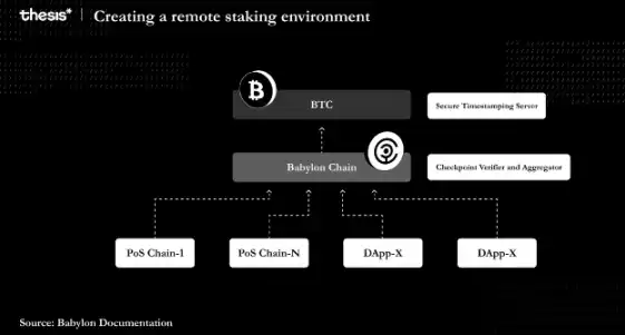 Babylon 创造了一种方式,使比特币能够在未桥接至其他链的情况下确保各种权益证明链,并提供保障。通过远程质押实现,质押的比特币被锁定在比特币链上的合约中。当其他链出现违规时,类似于以太坊或 Cosmos 的共享安全解决方案,这些质押会受到削减。