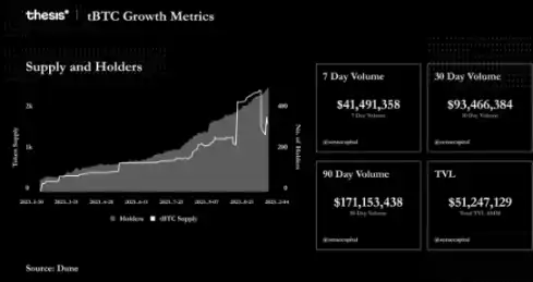 tBTC 是 Threshold 开发的比特币在以太坊区块链上的 Token 化版本。它旨在将比特币整合到其他区块链中,促进比特币在 DeFi 应用中的参与。tBTC 采用分散化模型,无需 KYC 协议,保护用户隐私和自主权。它已在多个区块链网络中整合,并显示出市场需求和价值。