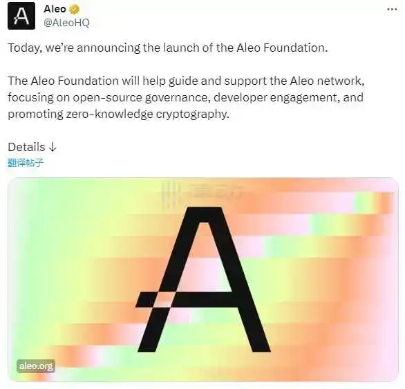 12 月 21 日,据官方消息,可编程隐私网络 Aleo 宣布成立 Aleo 基金会。据悉,Aleo 基金会将帮助指导和支持网络,重点关注开源治理、开发人员参与和推广零知识加密应用。Aleo 还将通过基金会初始分配 1.5 亿枚代币来支持创新项目。该基金会是怀俄明州的一个独立非营利 501c4 组织,将独立于迄今为止开发 Aleo 的商业实体运营。