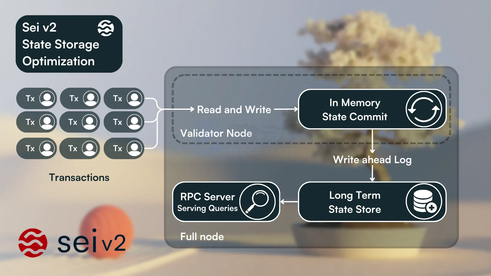 Sei 重新构建了存储接口,以针对不同的用例进行优化。Sei 通过将单个 IAVL 树分解为 2 个组件来实现这一点——状态存储和状态承诺(动机)。状态存储层提供对原始键值对的低延迟直接访问,这将帮助 RPC 节点更好地服务查询。