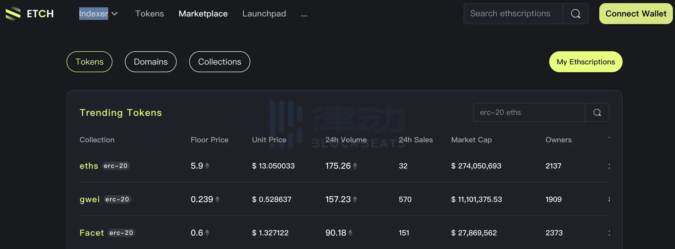 截止到发稿时,根据 CoinGecko 数据显示,以太坊铭文协议 Ethscriptions 代币 ETHS 价格为 12.86 美元,24 小时下跌 4%。