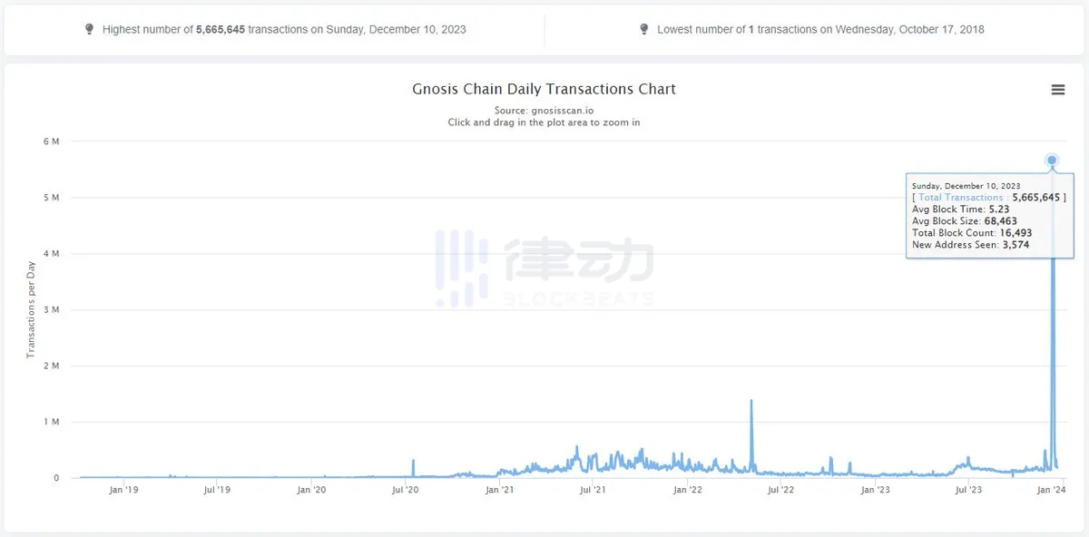 「用户有可能希望尽早在其他链上重现 BRC-20 的成功。然而,这些交易中的很多笔,都是通过同一个用户/机器人一遍又一遍地发送垃圾邮件而来。」他指出,这也导致 Arbitrum、zkSync、Avalanche 等其他链上的体验下降:「这种热潮何时结束还有待观察。」