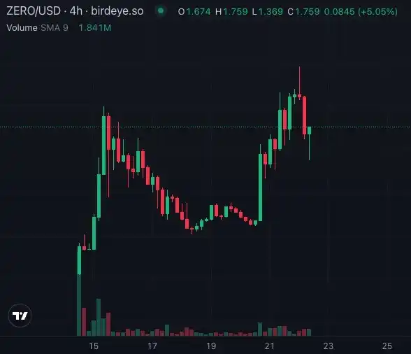 到这里,ZERO 不再是一个实验尝试,而是具有了「金铲子」的属性。ZERO 的价格也自 20 日起节节攀升,直到 22 日突破了 2 美元,两日跌去 60% 后,ZERO 又创下了两日涨幅超 250% 的成绩。