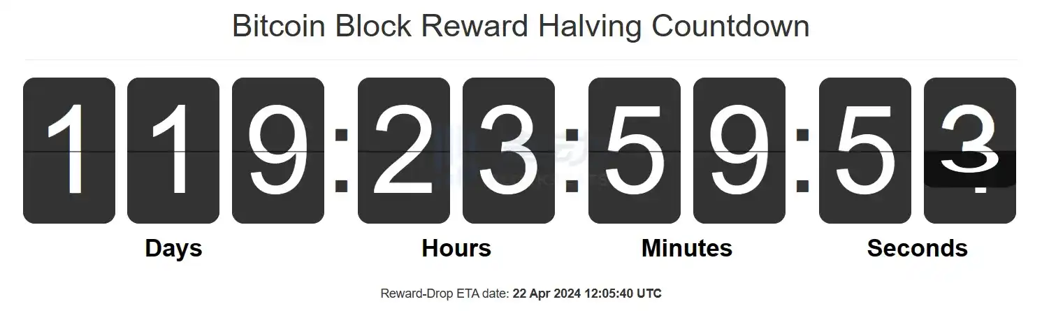 4. 比特币减半时间预计为 2024 年 4 月 22 日,已剩余不足 120 天
