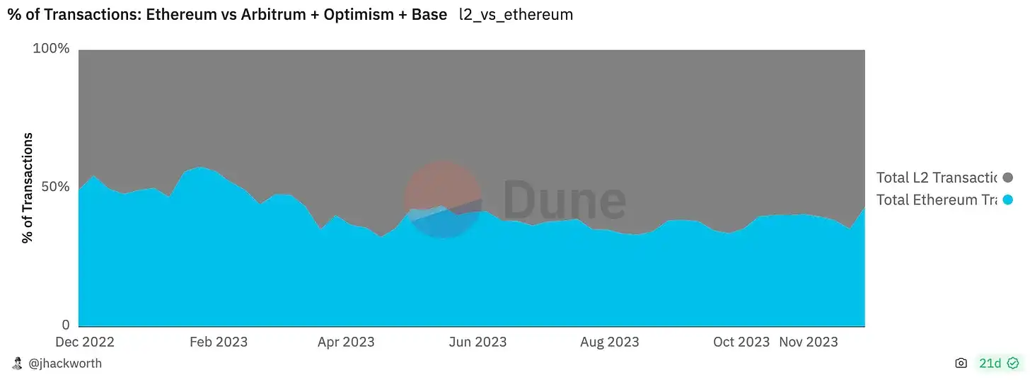 尽管许多人认为这有助于吸引以太坊的交易量和注意力,但这正是扩展系统的全部意义所在。事实上,L2 的成功组合是对以太坊成功的明证。
