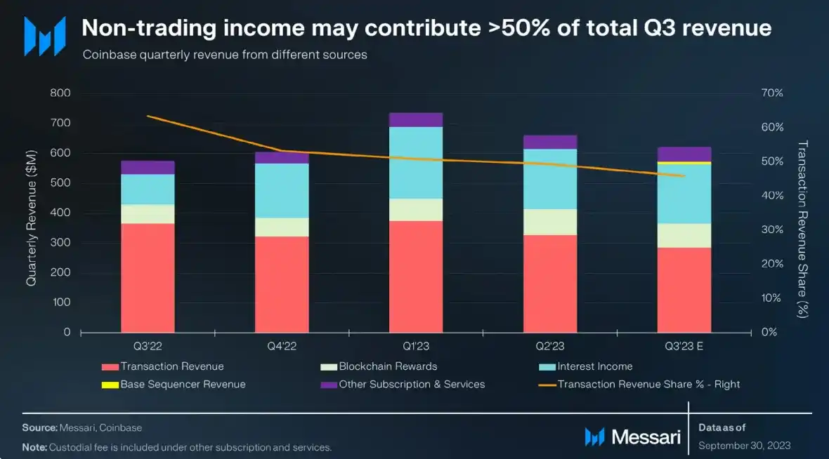在交易困难的一年中,Coinbase 成功地将大部分收入转移到非交易收入。其中,考虑到大多数 ETF 都提议将 Coinbase 作为托管人,他们的托管业务在 2024 年的表现尤其出色。