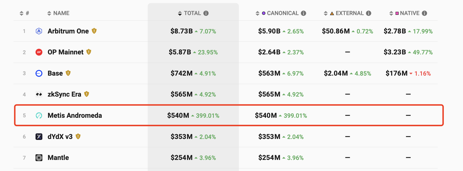 今日,据 CoinGecko 数据,截至撰稿时,Metis 原生代币 METIS 价格突破 70 美元,价格达到 76 美元,7 日涨幅达 191.3%;另据 L2BEAT 数据显示,Metis 总锁仓量(TVL)攀升至 5.4 亿美元,7 日涨幅达到 399%。