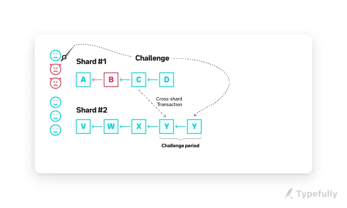 然而,分片的实施也带来了一系列挑战,如确保数据的可用性、交易的最终性以及促进跨 Rollup 交易。克服这些挑战需要仔细考虑和创新解决方案,以成功地将分片集成到单片区块链中。分片的示例包括以太坊、Near 和 Polkadot。
