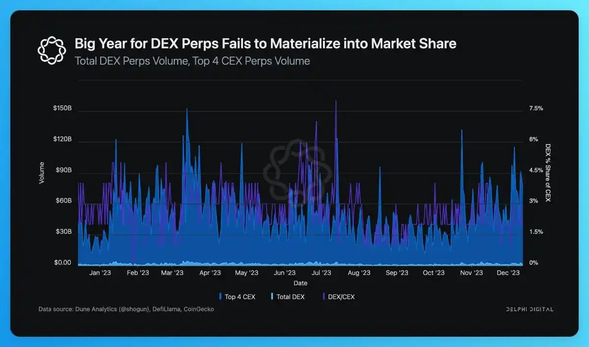 · Perp DEX 经历了一年的发展,但市场份额没有增加: