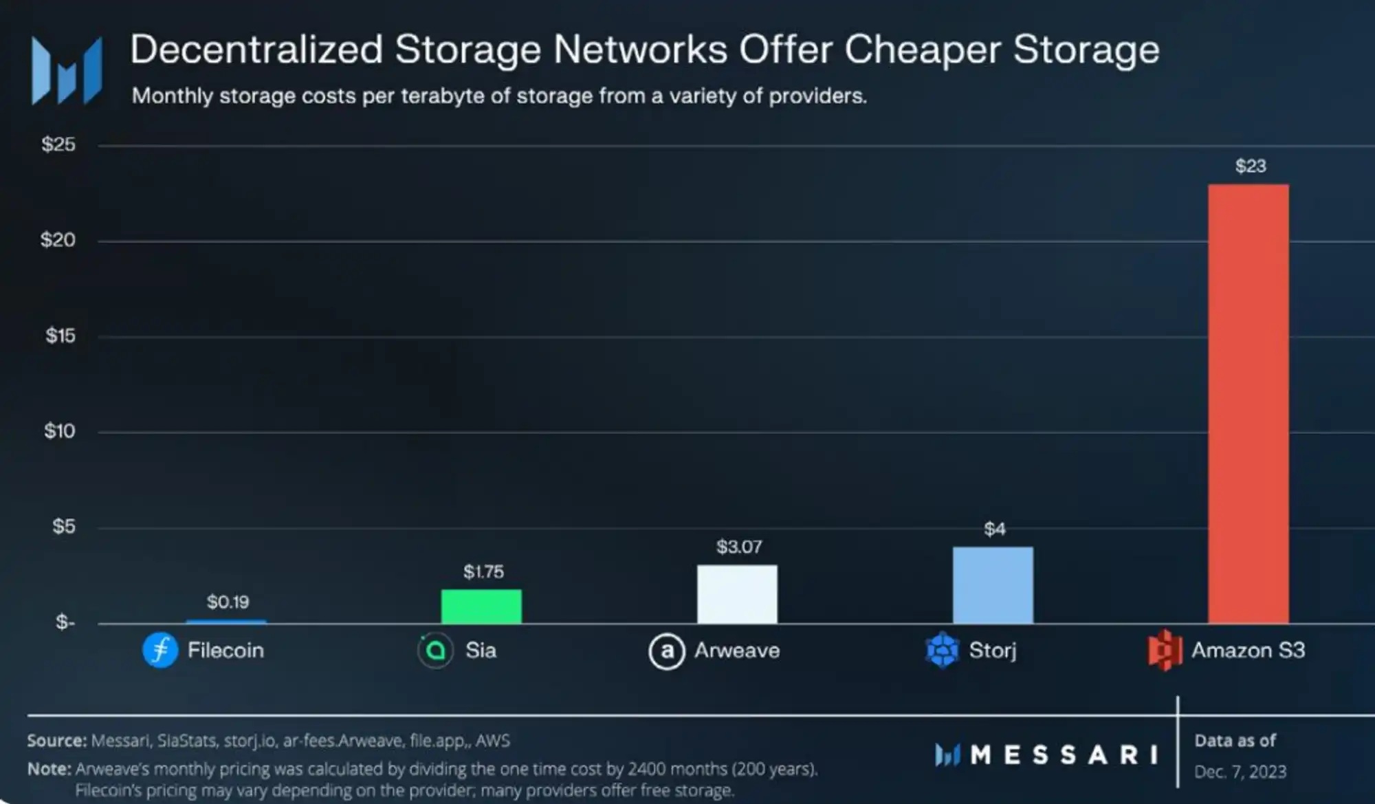 1.Decentralized Storage:目前的云存储市场拥有 800 亿美元的市场规模,并以每年 25% 的增速持续增长。而尽管去中心化存储服务的成本比 Amazon S3 等云服务提供商低 70%,目前去中心化存储的市场占比仍不足 1%,去中心化存储仍有巨大的市场机会。