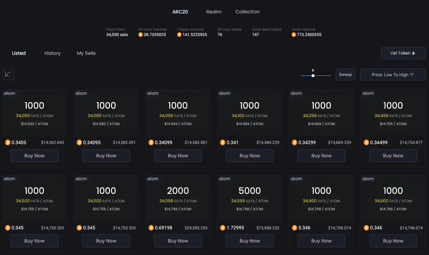 不同于 Cosmos 项目所发行的代币 Atom,Atomicals 的首个生态代币$Atom 总量 21000 张,每张 1000 个币。距今,Atom 也成为了比特币生态中不可多得的万倍币。目前 Atomicals 的大部分流动性和交易量仍集中在 ATOM。