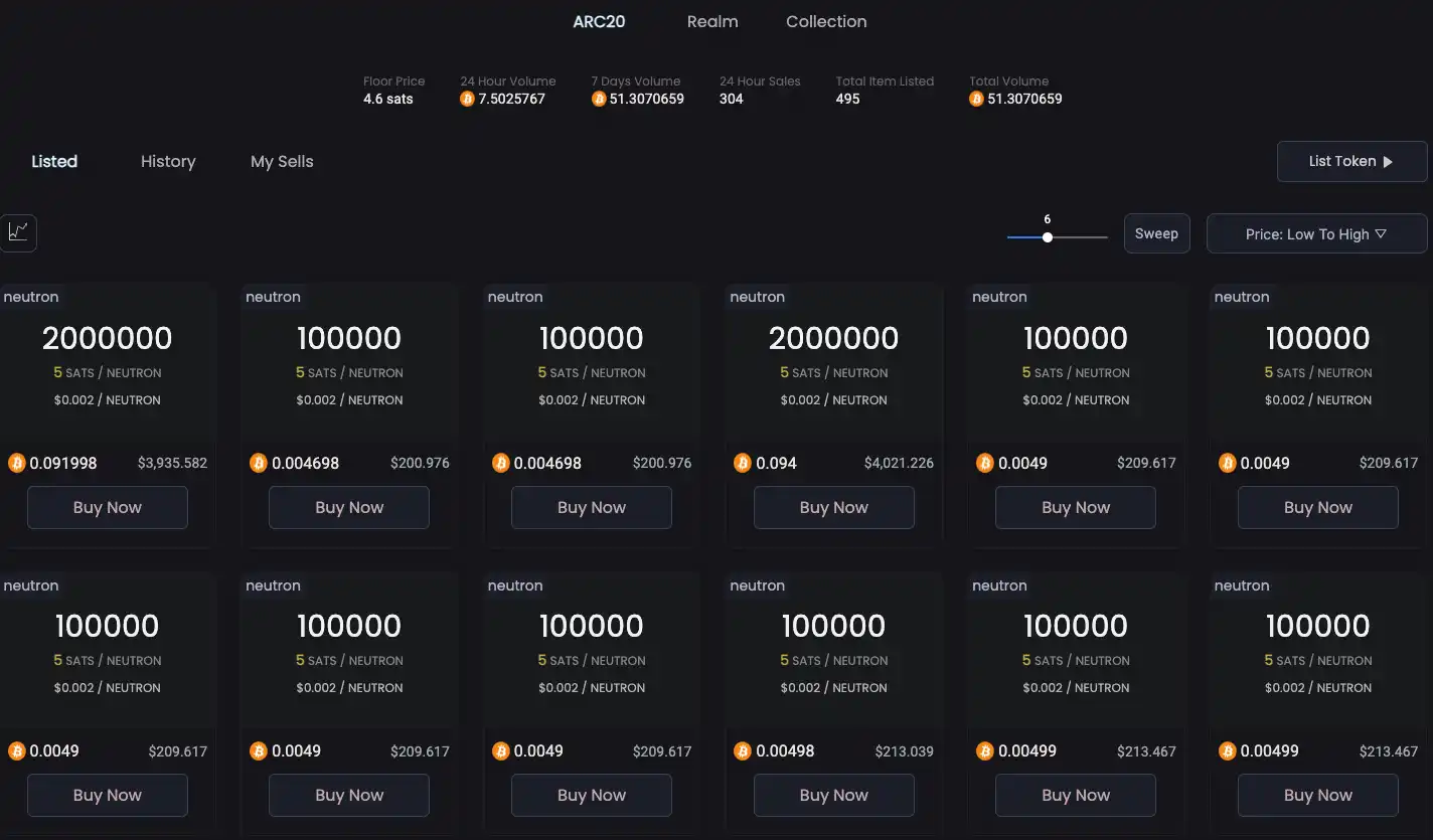 Neutron 挖矿难度 8,总供应量为 21000 张,每张 10 万枚代币。据 Atomical Market 数据,截至撰稿时,Neutron 价格为 0.002 美元,市值超 390 万美元,24 小时交易量超 30 万美元。