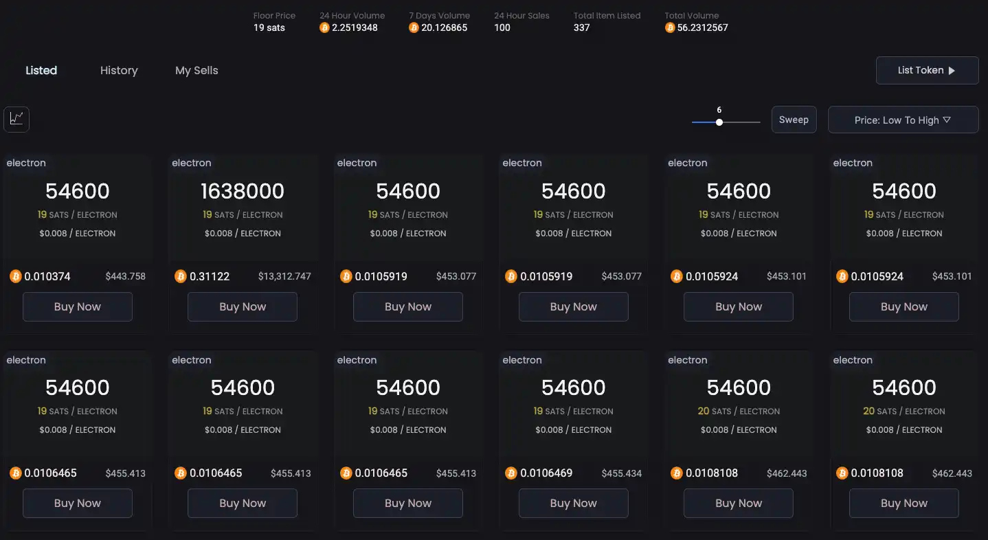 Electron 挖矿难度 7,是 11 月 19 日创建的 ARC20 代币,总供应量 18400 张,每张 54600 枚代币。据官方推文消息,Electron 挖矿耗时长达半个月。据 Atomical Market 数据,截至撰稿时,Electron 价格为 0.008 美元,市值超 760 万美元,24 小时交易量超 11 万美元。