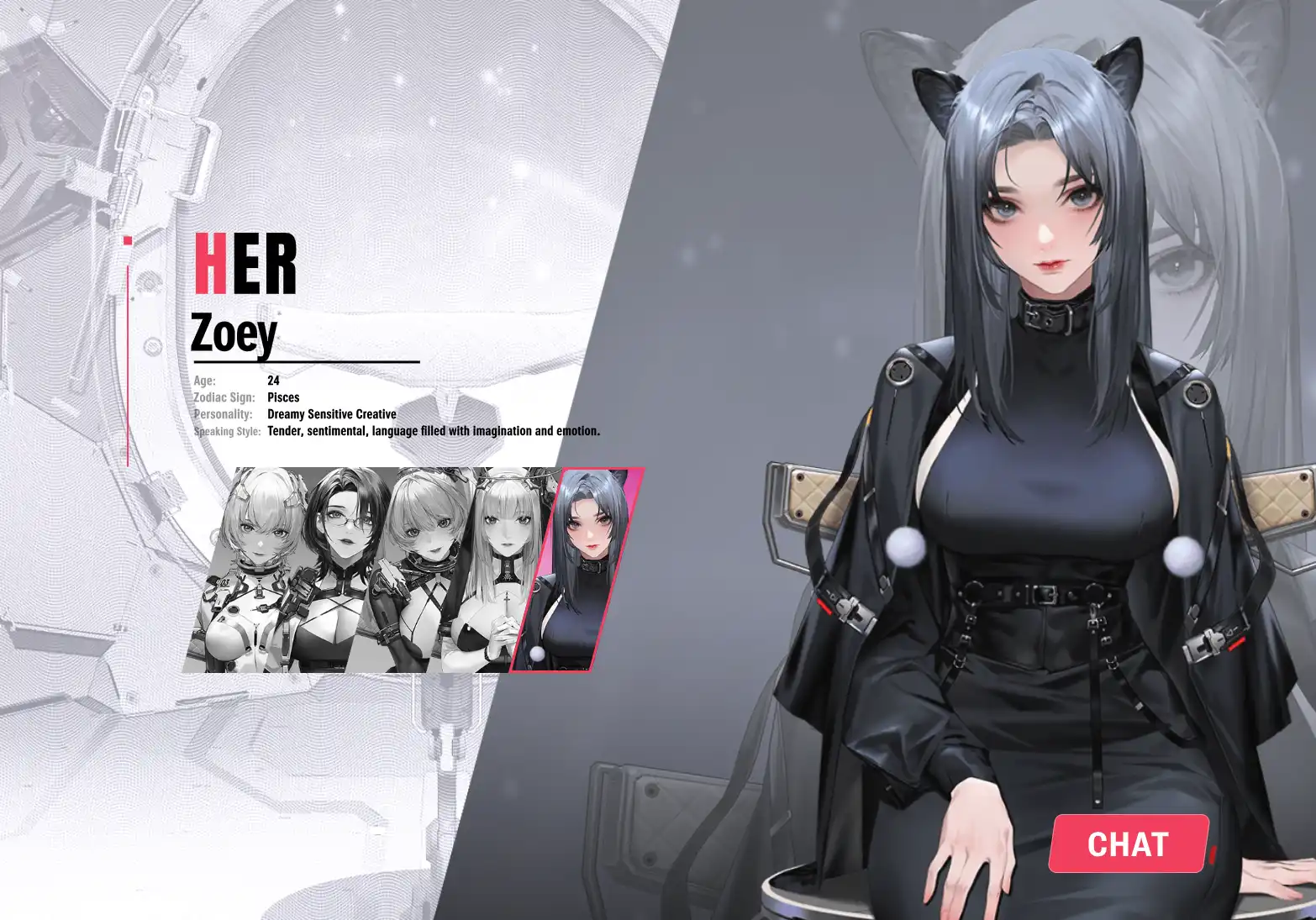 同样,在 HER 模式里,用户也可以尽情发挥想象力,选择可爱、性感、知性、冷漠等类型的虚拟女友作为理想搭配。