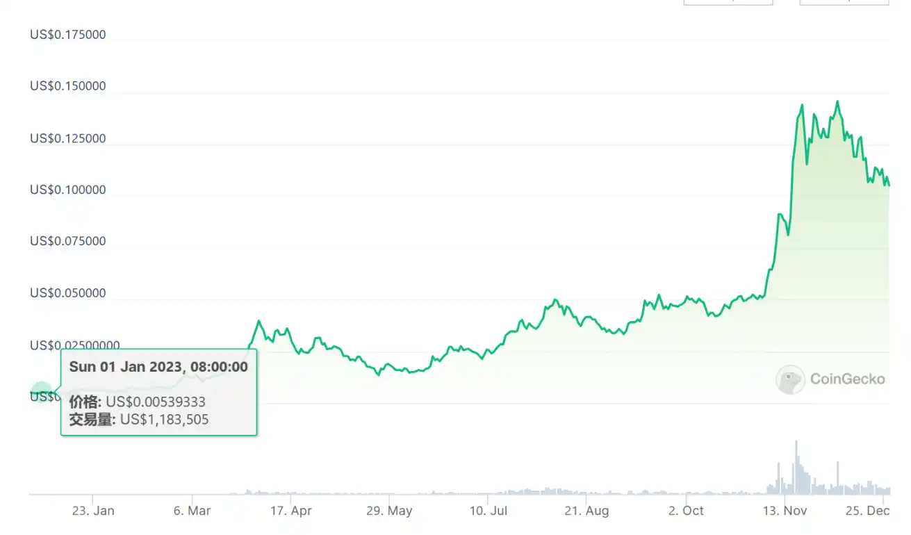 Coq Inu 代币 COQ 就是其中的佼佼者,一连创造了 2 个约 5000 倍收益的神话。