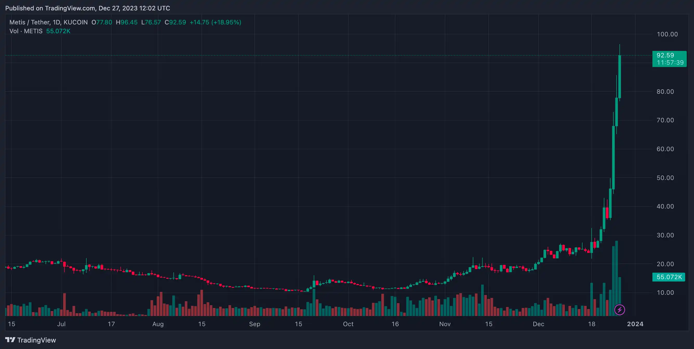 尽管如此,EDF(生态发展基金)的叙述,加上 Metis 是首批拥有去中心化排序器的 L2 之一,可能意味着至少在 2024 年的前几个月内,人们的关注会集中在 Metis 上。