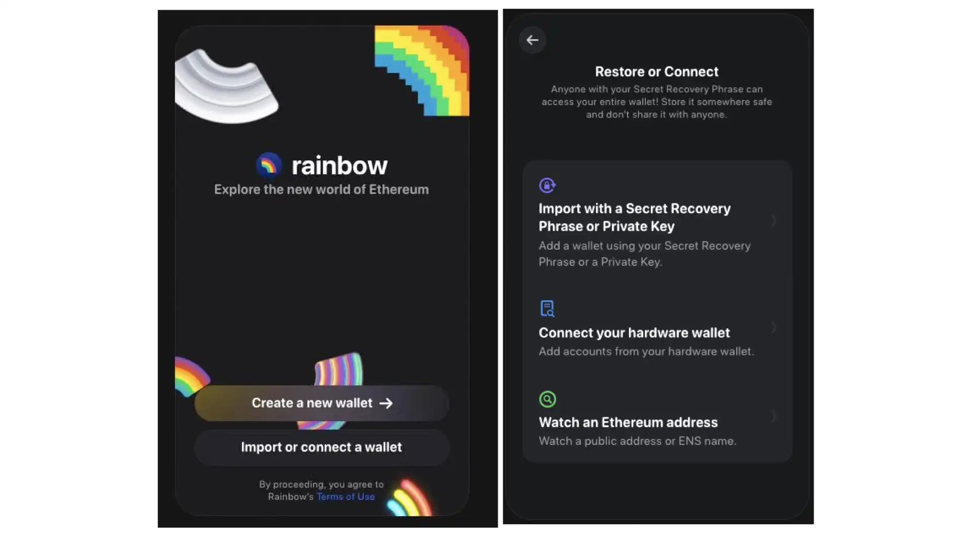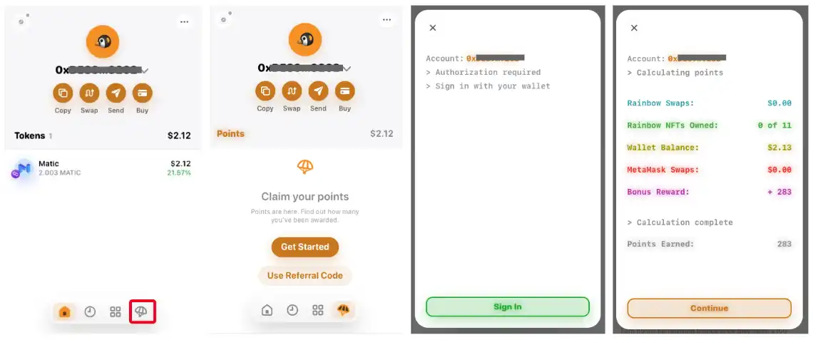 Rainbow 界面、MetaMask 界面、MetaMask 界面