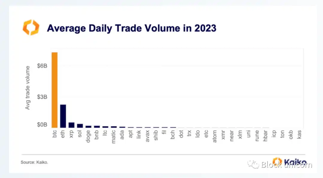 在过去一年的交易量分布中,我们可以看到比特币的交易量平均比以太坊大约多 3 倍,比前 10 大替代币要多 10 倍以上。值得注意的是,这一趋势在春季结束的币安零手续费比特币交易促销活动加剧了这种差异。