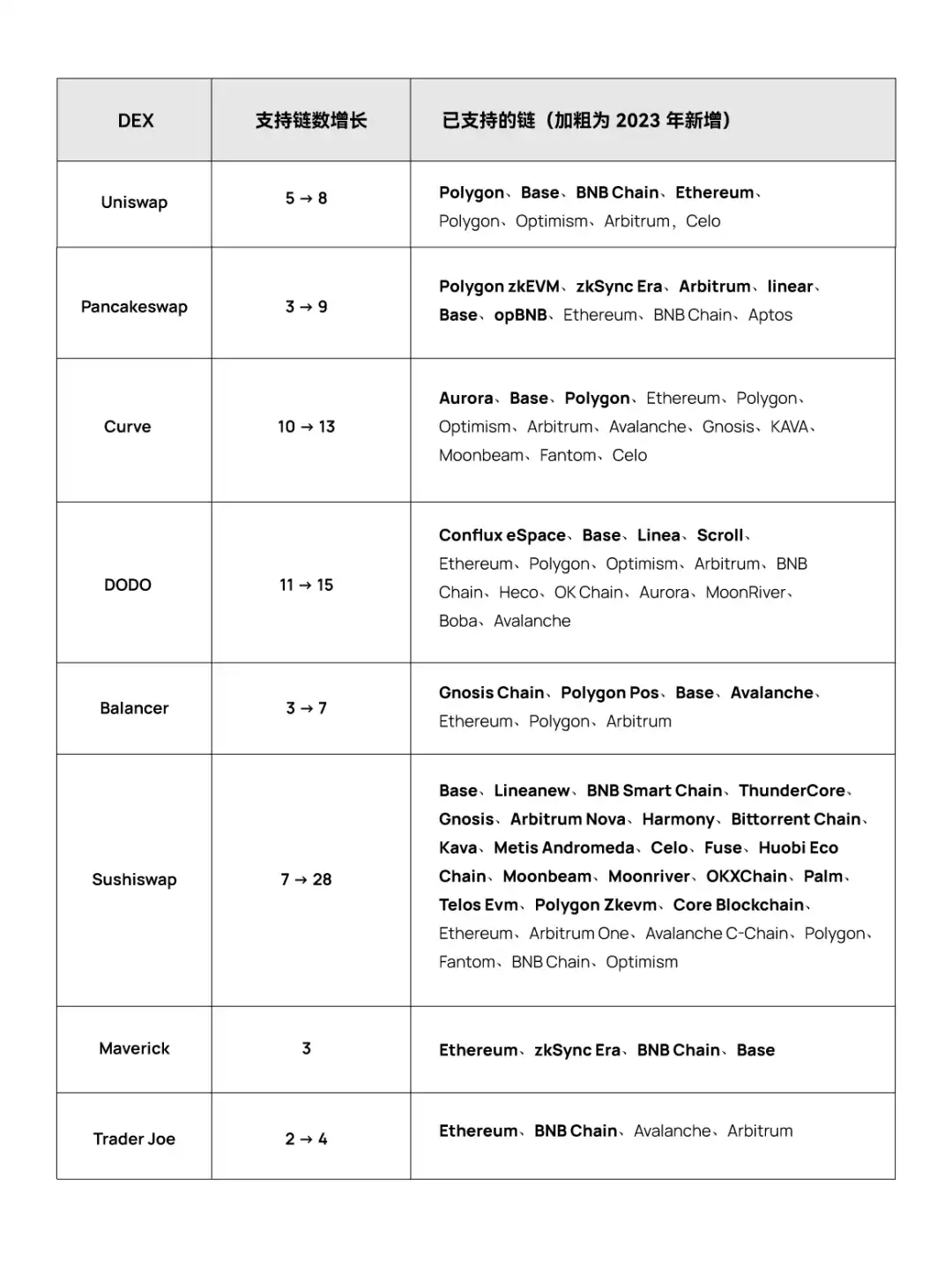 「整体来看,各大 DEX 积极向 EVM 兼容的公链 和 L2 拓展。」