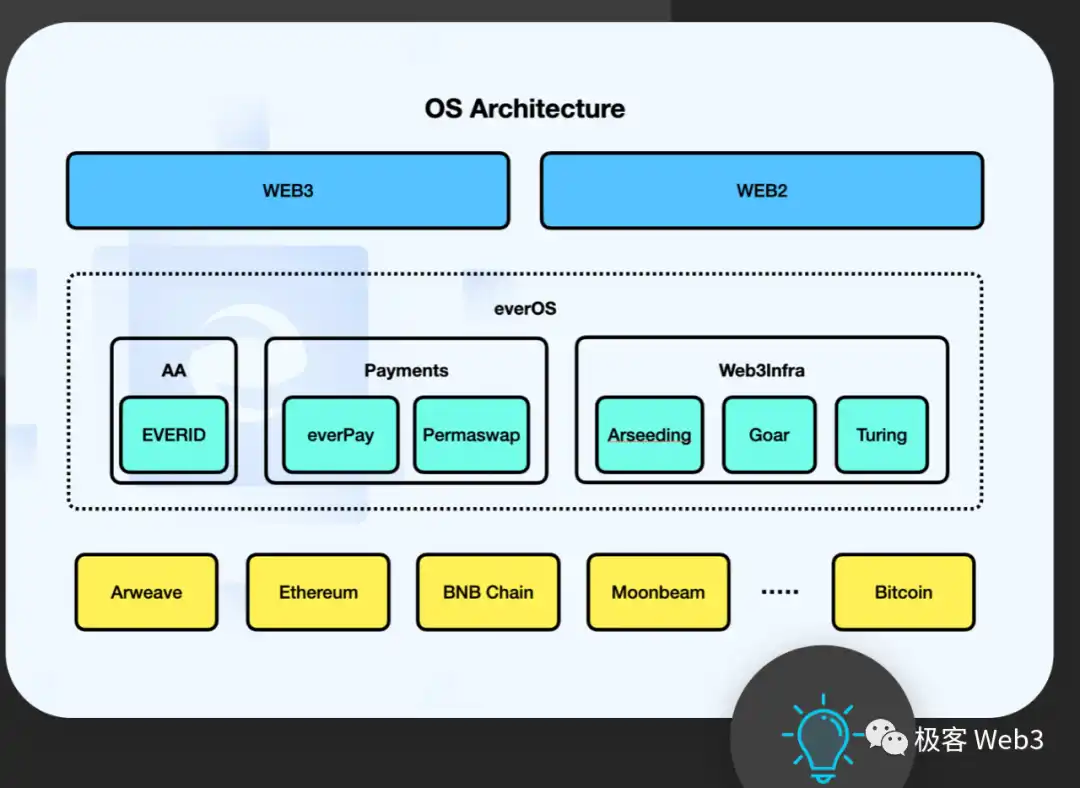 ·该项目的 DA 层使用了永久存储设施 Arweave,即图中的大圆圈。