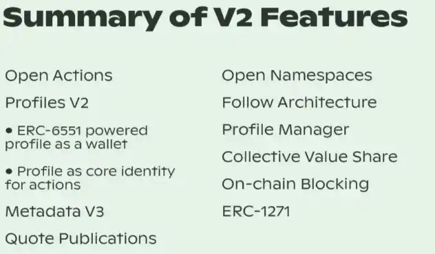 截至今天,Lens 拥有 125,964 个 Handle,并已在所有相关 Dapp 上推出 Lens V2。Lens V2 很特别,因为它引入了几个创新,改进了当前的社交媒体内容创作者范式,欢迎创作者和开发者通过智能合约技术使社交媒体具有游戏化,这是一个社交媒体和区块链完全新的范式。在 V2 之前,Lens 通过 Hey 等应用层上的一个按钮引入了在其社交图上收集帖子的概念。在超过 400,000 个帖子被收集和用户总共铸造了 350 多万 NFT 后,这凸显了他们的 DeSoc 范式的巨大成功。现在,他们在此功能的基础上进行了迭代和更新,为开发者构建了与帖子或出版物相关联的自定义操作。他们将这个新用户操作称为「出版物操作」,它由 Lens handle 执行。这里的创新在于操作链与用户和内容都相关联,而不是匿名小费,内容创作者无法与他们的作品联系或定量评估。