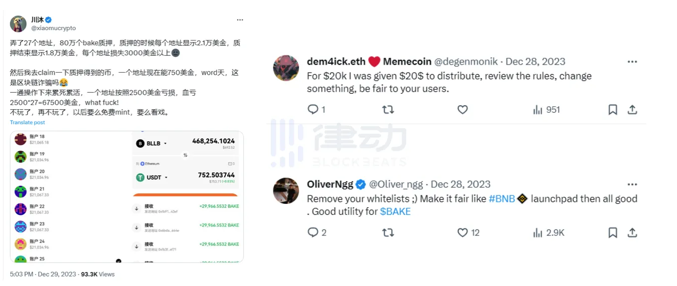 而在 BakerySwap 已经吸引了足够的关注后,社区就更关注 Launchpad 的参与体验了。12 月 28 日,BakerySwap 宣布第二个 Launchpad 项目 BitLand IDO 成功,收到了 1.16 亿枚$BAKE(价值约 8050 万美元)和 19 亿枚 1Cat(价值约 2300 万美元),USDT 总额达到 1.035 亿美元。而高达 360 倍的超额认购数字意味着参与者所获得的份额可能会很小,果然,许多参与 BitLand IDO 的人表示成果甚微。