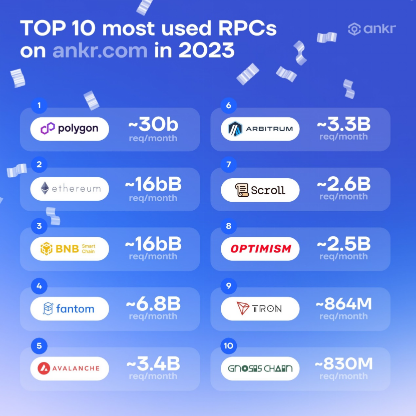 作为 Ankr 的旗舰服务,2023 年我们为开发人员和 dApp 用户提供了惊人的 RPC 请求处理服务。