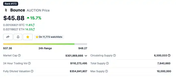 Bounce Finance 平台代币为 AUCTION,用例包括治理投票、交易媒介、独家拍卖聚焦(质押以获得平台的推广和)、获得 Bounce V3 会员资格、质押获得分红等。