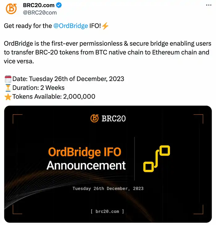 Ordinfinity 是一个基于 ordinals 的跨链、Swap、多链借贷、lanchpad 的 Defi 平台。$ONFI(BRC20)是 Ordifinity 的原生实用代币,持有者享有治理、跨链费用减免白名单、获得质押奖励等权益,总发行量 2,100,000,000,当前市值约为 8.7m。