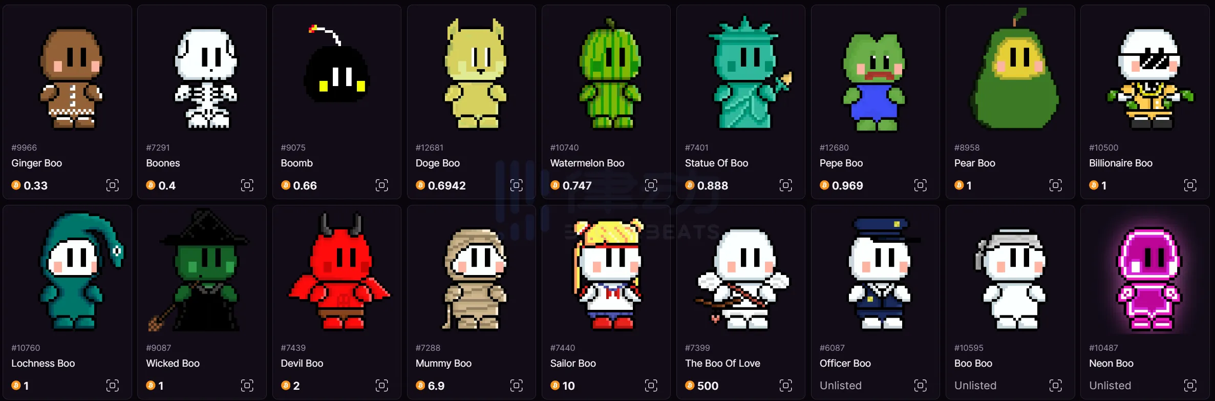 又一个 OG 项目。总量也只有 100 个,铭文编号在 3314 - 14274 区间,目前地板价 0.33 比特币,总成交量 7.18 比特币。Bitcoin Boos 还有一个新系列 Boottalion Soldiers 目前可以争取白名单。