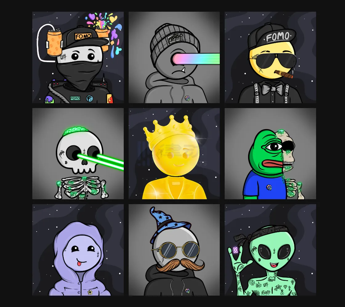 Fomojis 算很 OG 了。一代的总量只有 100 个,铭文编号在 18951 - 24112 区间,目前地板价 0.34 比特币,总成交量 7.2 比特币。1 个月前发了二代,总量 2009 个,目前地板价 0.0129 比特币,总成交量 25.42 比特币。
