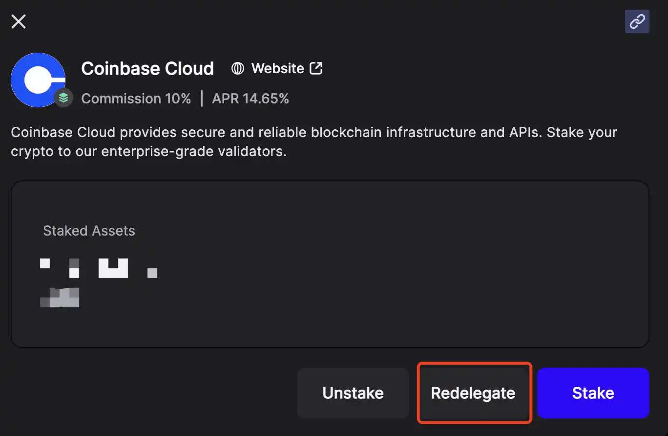 如果你此前质押节点选择了交易所节点,可通过以下方式更换质押节点: