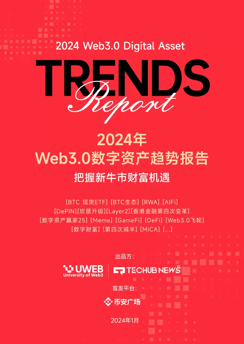 币安广场首发,Uweb&Techub News出品的这份《2024年Web3.0数字资产趋势报告》不仅是一份报告的陈述,它是对创新的献礼,是向每一位有勇气在Web3.0时代乘风破浪者的致敬。在这个波澜壮阔的数字资产市场中,我们不满足于观望,而是选择主导。让我们一同寻找北极星