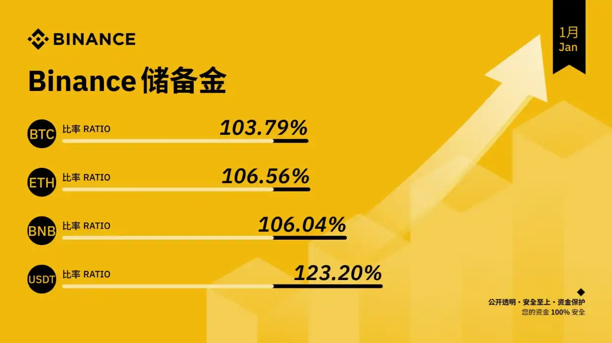 Binance 发布 2024 年 1 月储备金证明,BTC 储备金比例达到 103.79%