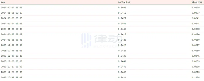 您可能还注意到用户为发布数据支付的费用存在差异。它完全由 @MantaNetwork 驱动,他支付的费用比其他人多约 10 倍!