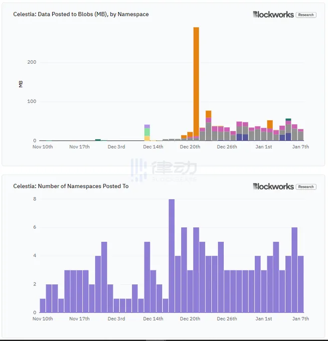 发布到 Celestia 的所有数据中有 87% 发送到了 3 个命名空间: