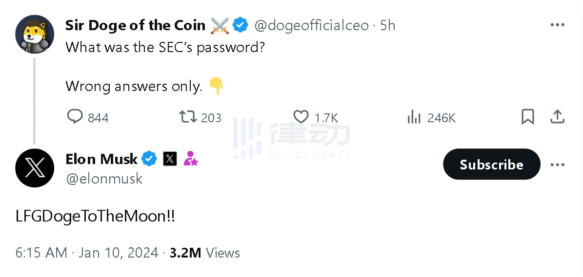 1 月 10 日,美国 SEC 官方在社交媒体发布消息称比特币现货 ETF 被批准。这条推文流量瞬间百万。情绪积攒到这个时候,配上这条加密货币行业等了数年的新闻,没有任何人会觉得这几行字会有任何问题。