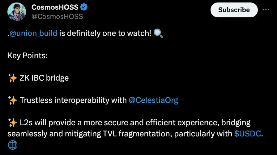 在SOL-ES-TIA叙事下,TIA 市值随之上升。加密研究员 ARNDXT 梳理了基于 Celestia 构建的 6 个潜力项目,包括游戏链 Ancient、rollup 桥 Hyperlane、ZK 方案 Skip、rollup 协议 Cartesi、基础设施 Union 和再质押机制 Alt Layer,并分别阐述了看好因素。 将原文编译如下: