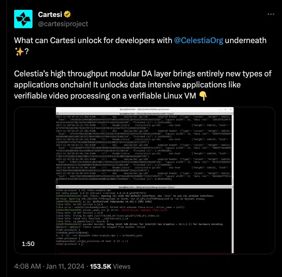 Cartesi 是一个特定于应用程序的 rollup 协议,具有基于 Celestia 构建的 Linux 运行时。