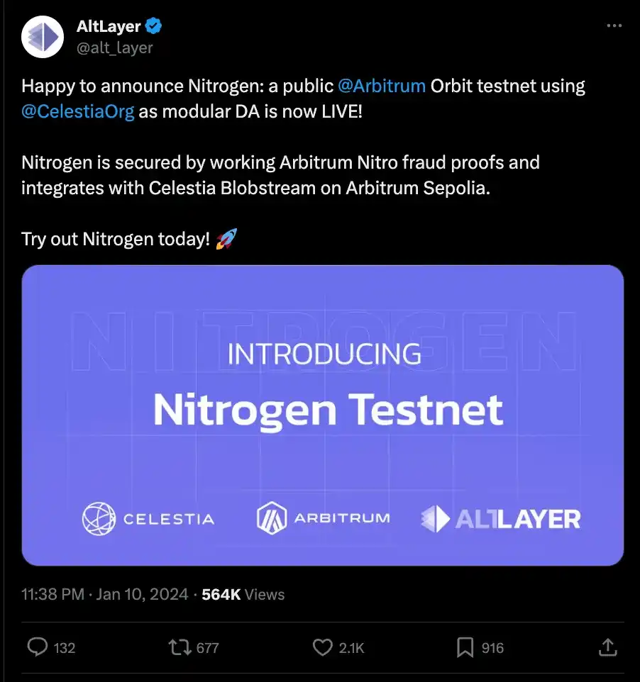 Alt Layer 采用现有的 rollup(从任何 rollup 堆栈中衍生出来,例如 OP Stack、Arbitrum Orbit、ZKStack、Polygon CDK 等),并为它们提供 EigenLayer 的再质押机制,以引导网络安全并构建去中心化网络。