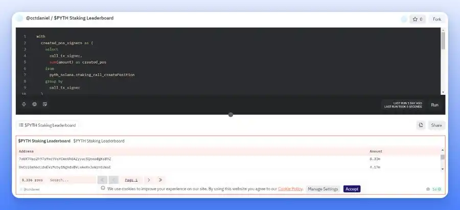 用户可以从 Dune 仪表盘上查看质押获得的分数,请点击这里。