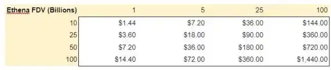 以这些倍数为指导,我创建了以下潜在的 Ethena FDV。
