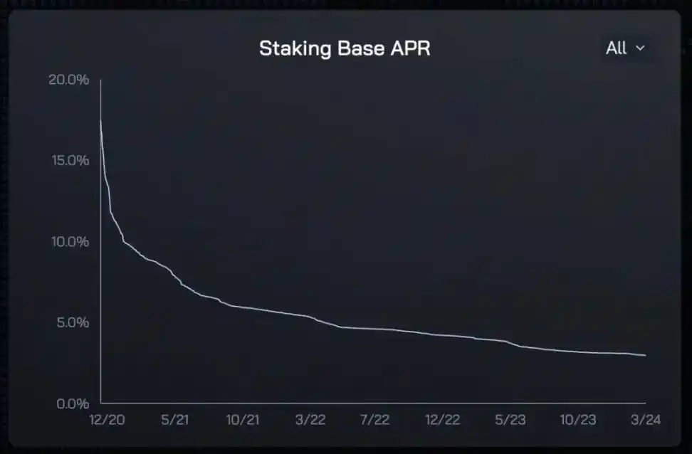如果 100% 的 USDe 被质押,即 sUSDe 供应量 = USDe 供应量: