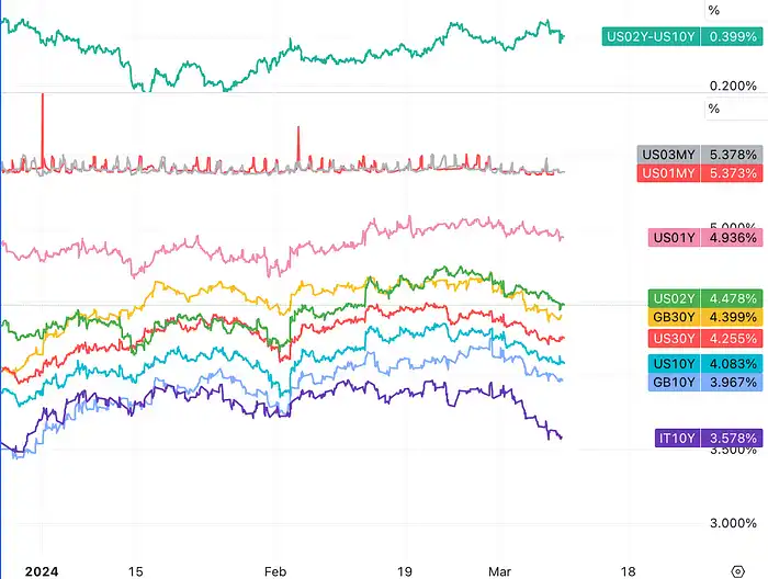 美国 2 月就业人数增加了 27.5 万人,大幅超过预期的 20 万人。尽管 2 月份就业岗位的增加数量看似乐观,但家庭调查的弱势和失业率的上升揭示了就业市场的一些潜在不稳定性。工资增幅低于预期,平均时薪(AHE)环比上涨 0.14%,低于预期的 0.2%。失业率上升 0.2 个百分点至 3.9%,高于预期的 3.7%。这些分项数据对于控制通胀可能是一个积极的信号,但也可能对消费者支出造成一定的压力。