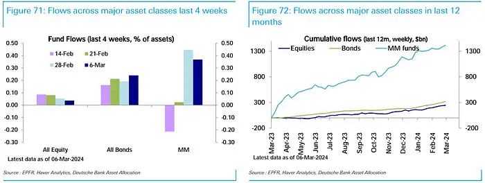 根据 EPFR 统计口径,资金大幅流入货币基金、投资级债基金和股票基金,创纪录流入加密货币基金,流出科技股和能源股基金。