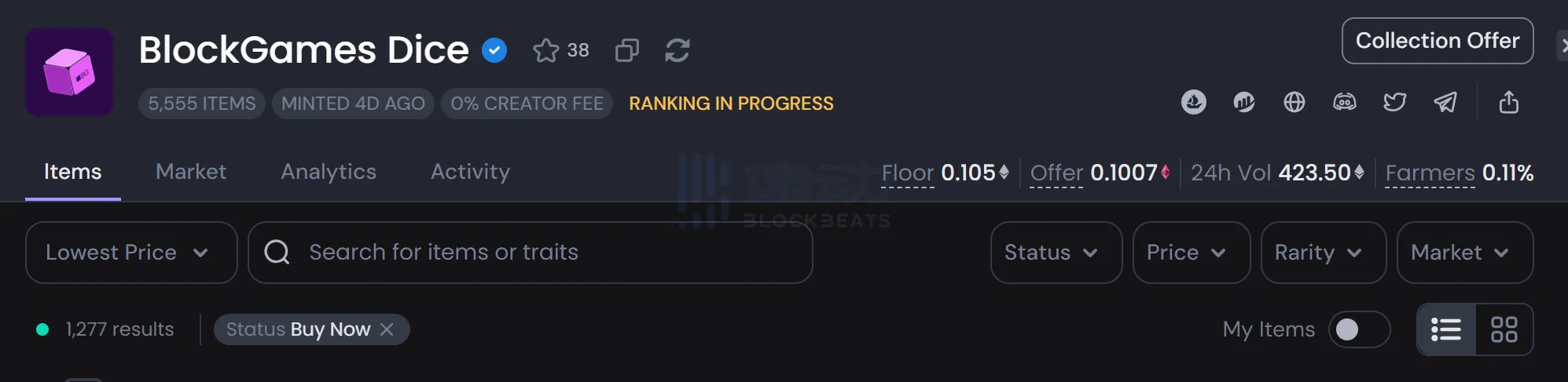 自 BlockGames 宣布 $BLOCK 空投活动以来,其 NFT 系列「BlockGames Dice」因为会在空投活动中拥有巨大效用而上涨了接近 100%,成了最近凉得透透的 ETH NFT 市场中一道亮丽的风景线。