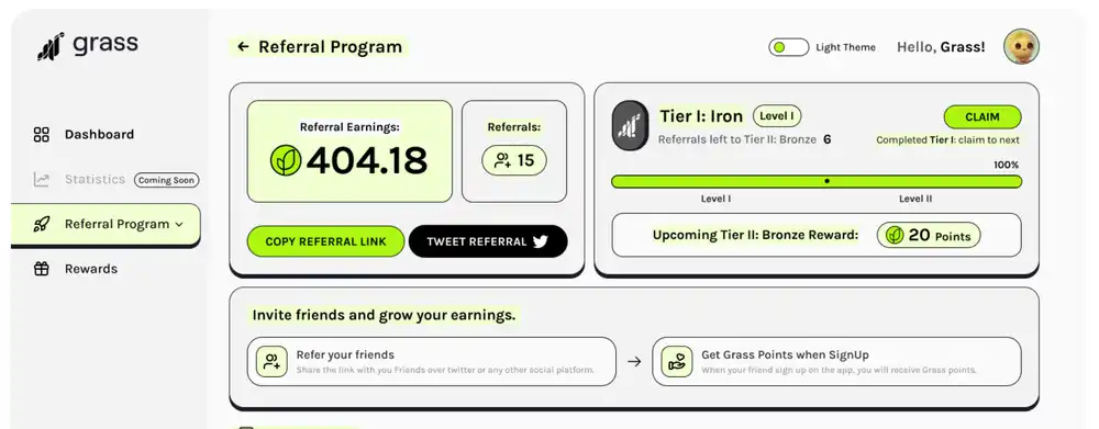 Grass 是一个分散式网络,通过收集公共网络数据以训练人工智能模型。用户通过安装他们的浏览器扩展程序,就可以在 Grass 上运行一个节点,并将可用的互联网带宽贡献给网络,使其合作伙伴能够收集公共网站数据并训练他们的模型。然后,用户会获得补偿,Grass 目前处于测试阶段。