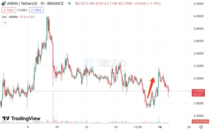 Arkham(ARKM)24 小时涨幅 22%;现报价为 2.7 美元。