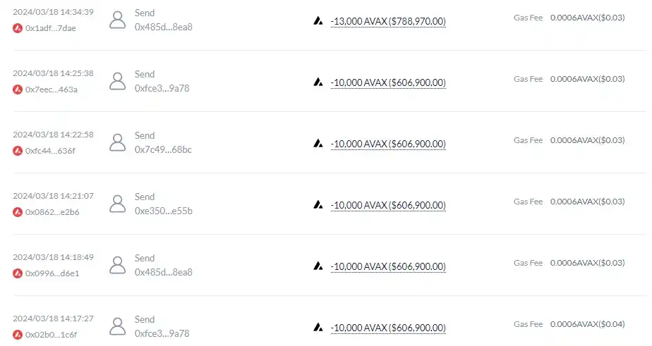 Avalanche 募资项目 Sener 共募资了约 93000 枚 AVAX,价值约 480 万美元,但在昨夜开盘时,创始人仅向 LP 池添加了 20000 万枚 AVAX,而后转移了其余的所有 AVAX。而项目代币 SENDER 仅开盘轻微上涨,项目方未曾使用剩余资金回购或其他护盘操作,目前代币已进入全面抛售阶段。