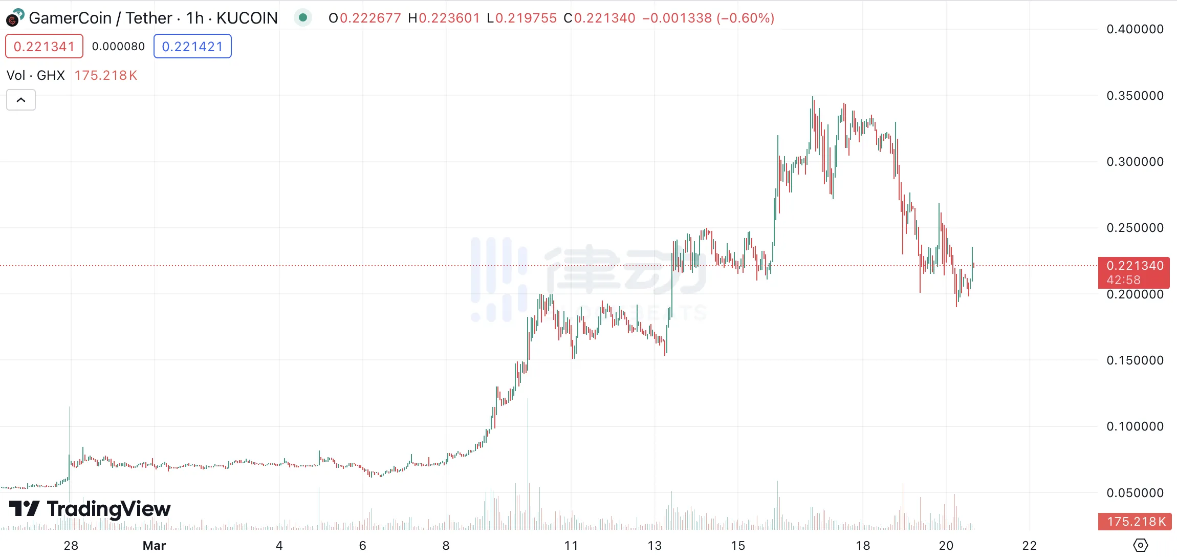 3 月 19 日,GamerHash AI 宣布与去中心化计算平台 Golem Network 建立合作伙伴关系。GamerHash Al 代币$GHX 近一个月涨幅超 500%,但近几日出现了近 40% 的回落,截至撰稿时报价 0.22 美元。